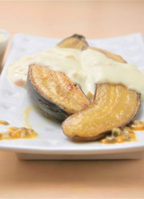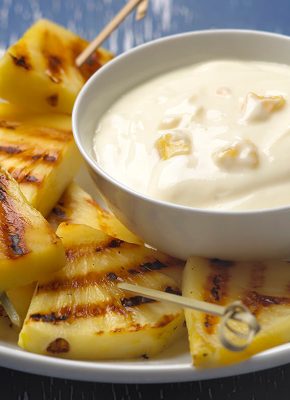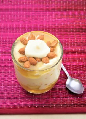 Juicy pieces of mango, papaya, and passion fruit in creamy yogurt. Yep you heard that right...delicious!