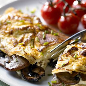 Mushrooms and chives have been used to flavour this omelette