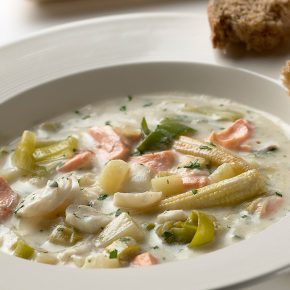 This is a hearty satisfying seafood soup. It’s a meal in i