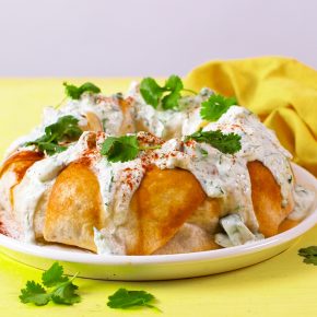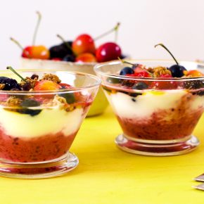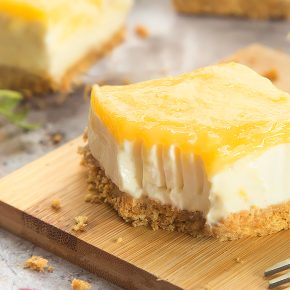 A rich yogurt cheesecake filling and a topping lemony fresh