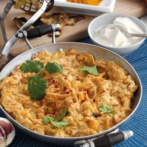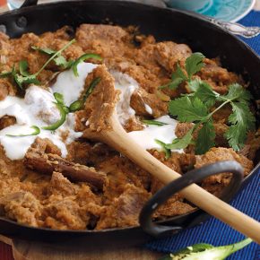 Roasted leg of lamb, coated in a yogurt and tikka sauce. Ser